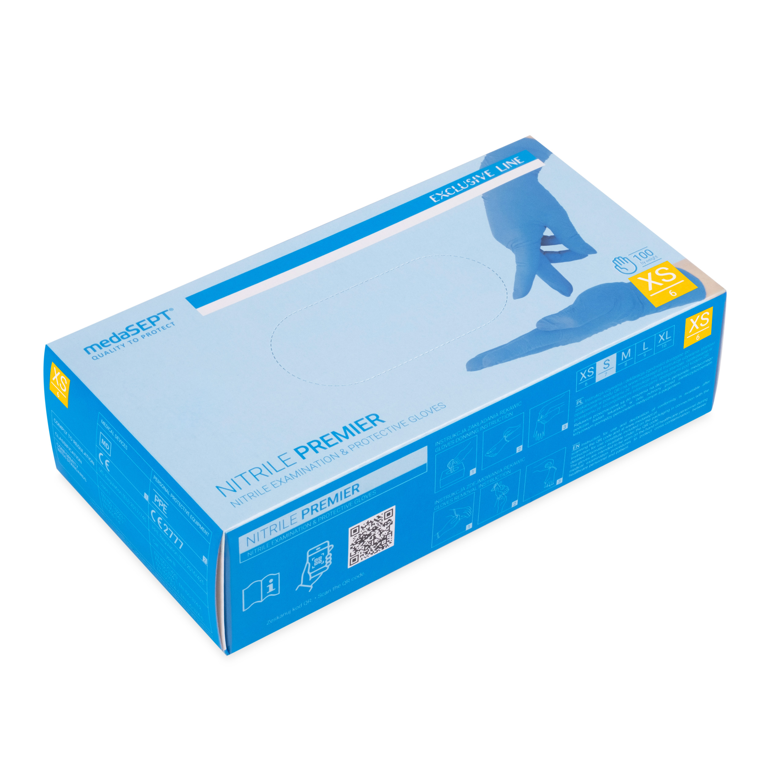 medaSEPT NITRILE PREMIER XS diagnostické rukavice, nitrilové, bez pudru, blue 100 ks.