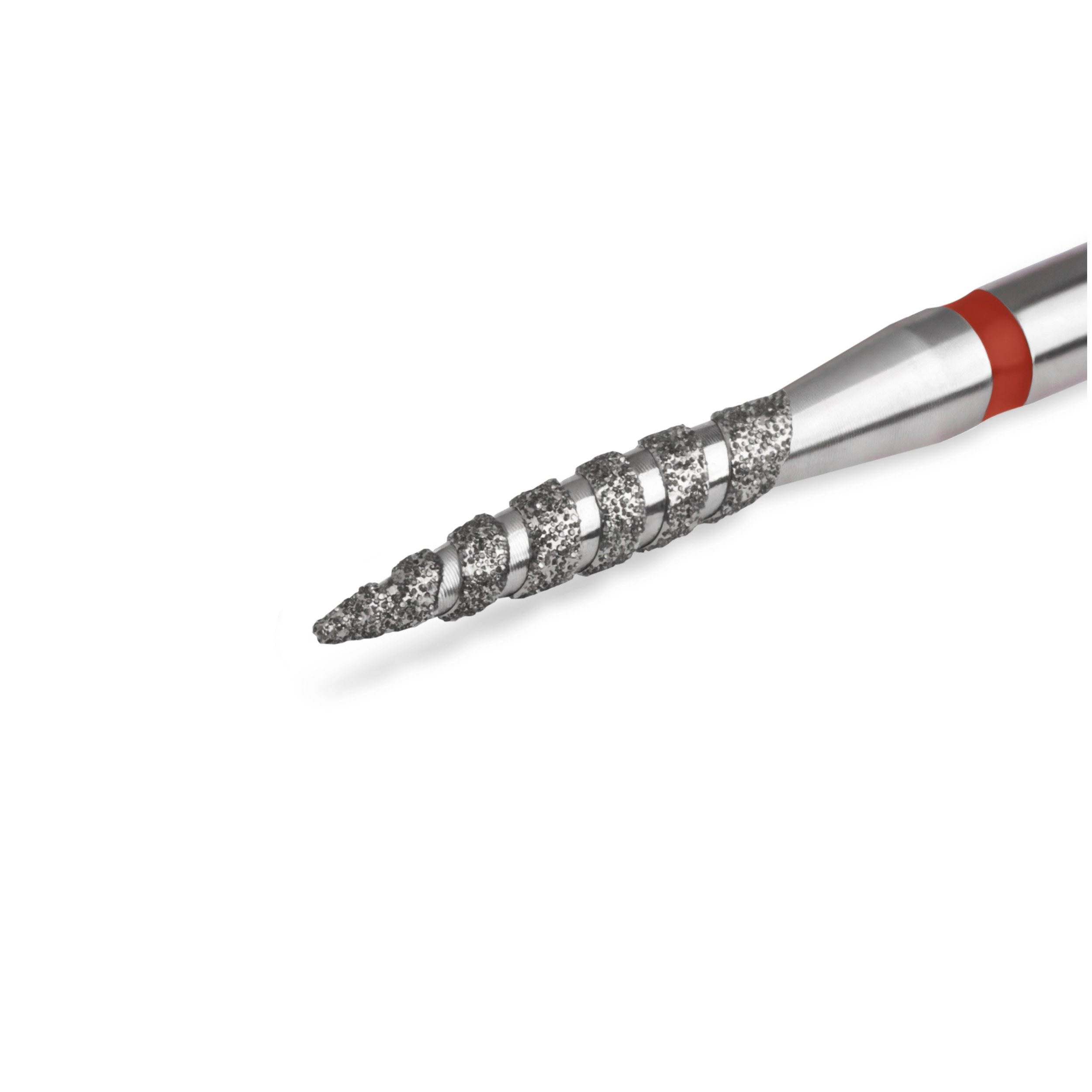 Erreichen Sie höchste Präzision beim Finish der Maniküre mit dem professionellen Aba Group Diamantfräser MASTER PRO TORNADO Flamme rot – 11 mm. Die hier angewandte TORNADO-Technologie nutzt eine spiralförmig angeordnete Diamantbeschichtung mit Zwischenräumen, die den Staub kontinuierlich ableitet, ein Verstopfen des Werkzeugs verhindert und die Kühlung der bearbeiteten Oberfläche optimiert. Es ist eine ausgezeichnete Wahl für Stylistinnen, die makellose Sauberkeit der Nagelwälle schätzen, sowie für diejenigen, die ihre ersten Schritte in diesem Beruf machen.