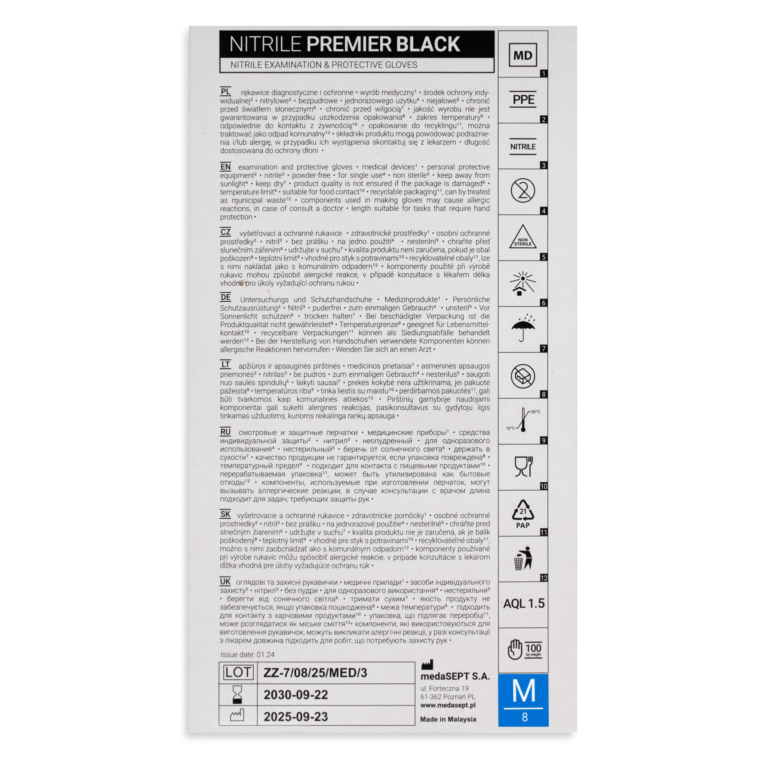 medaSEPT NITRILE PREMIER M diagnostic gloves, nitrile, powder-free, black, 100 pcs.