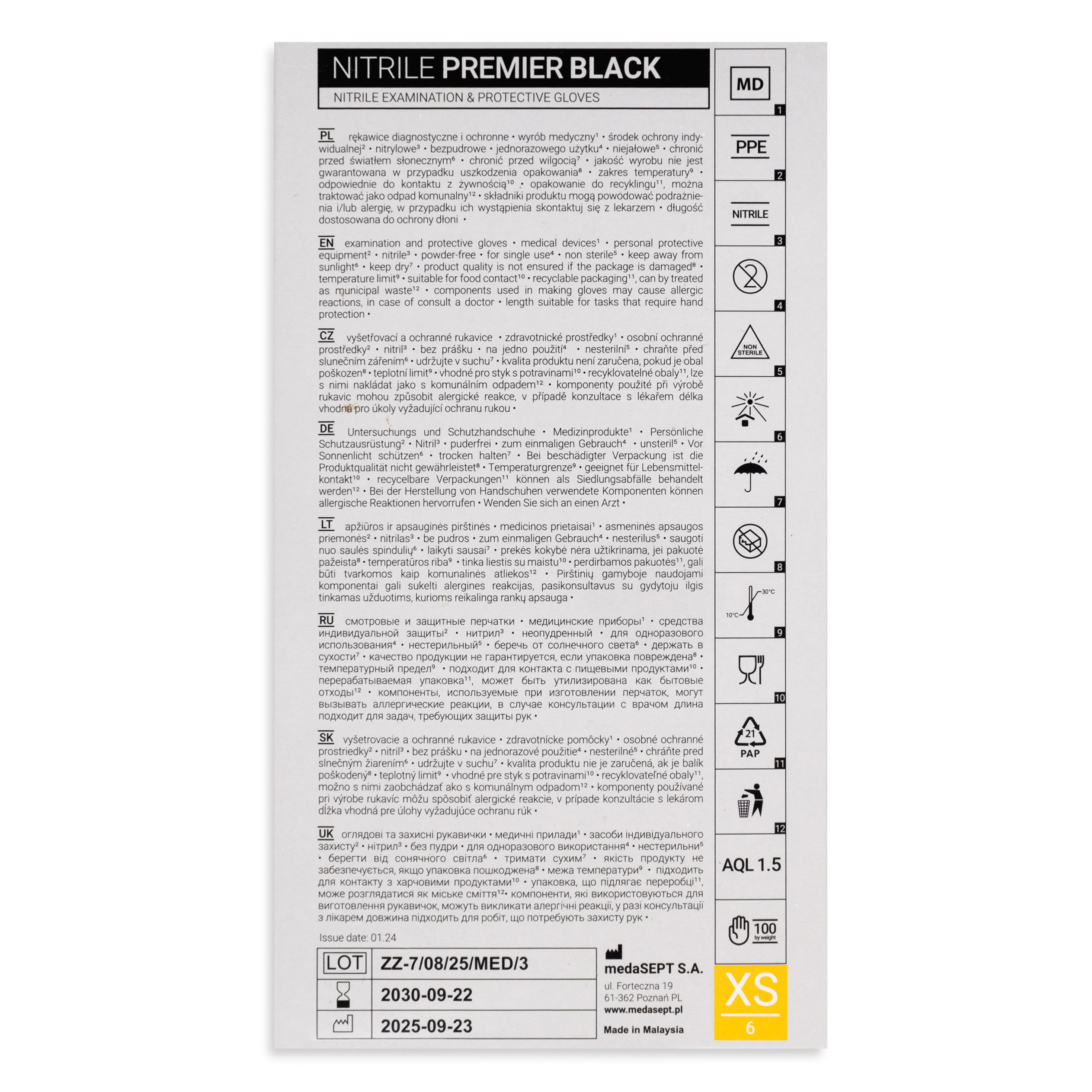 medaSEPT NITRILE PREMIER XS diagnostic gloves, nitrile, powder-free, black, 100 pcs.
