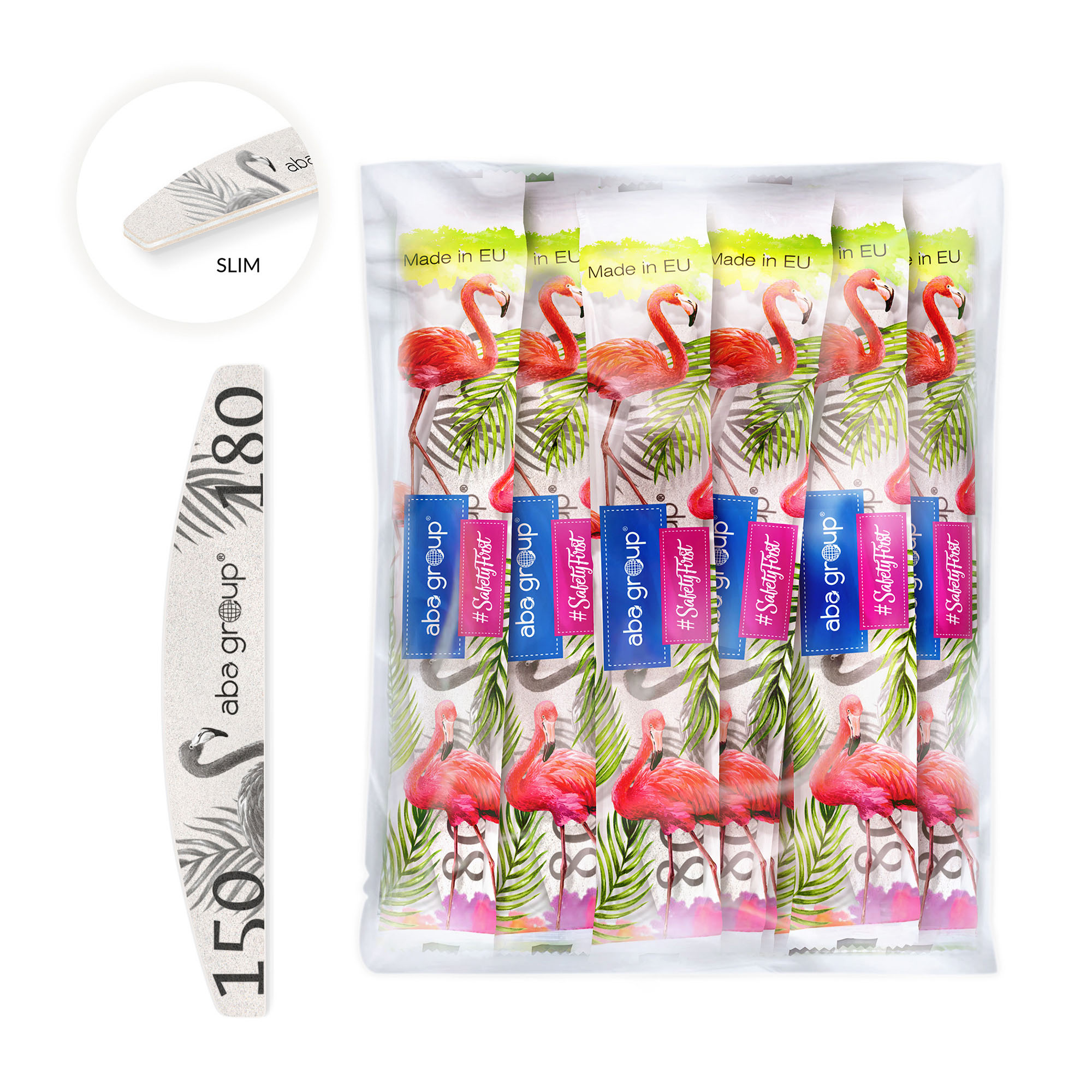 SAFE PACKAGE 500 pieces Nail files FLAMINGO Aba Group HALF MOON 150/180 SLIM