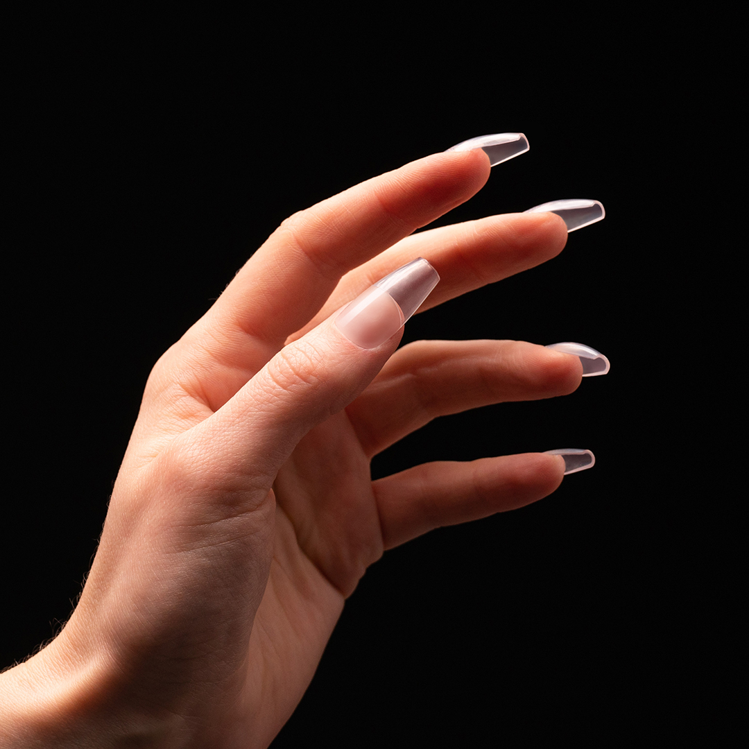 Le tips trasparenti Press On Full Cover per il metodo INSTANT NAILS. La struttura unica ed i componenti di altissima qualità rendono le tips flessibili e resistenti agli urti, molto di più delle classiche tips in acrilico duro. Non saranno un problema durante la limatura e l’accorciamento.