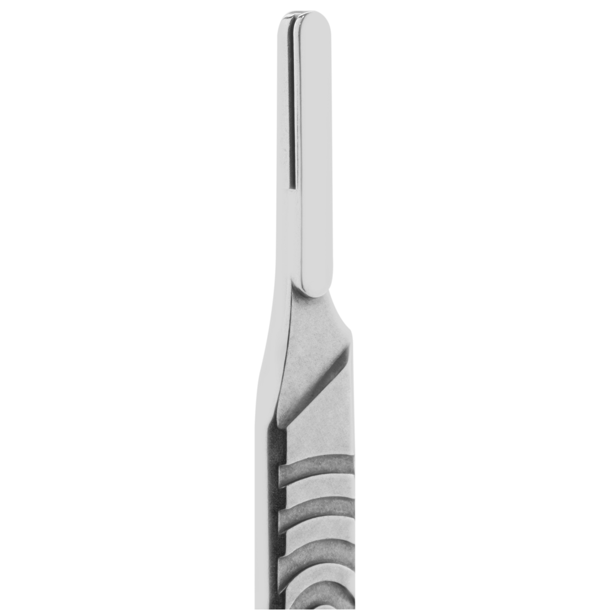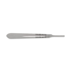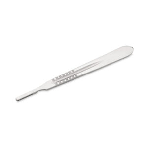 Manico per bisturi realizzato in acciaio chirurgico, grazie al quale il prodotto è sicuro durante l’uso.