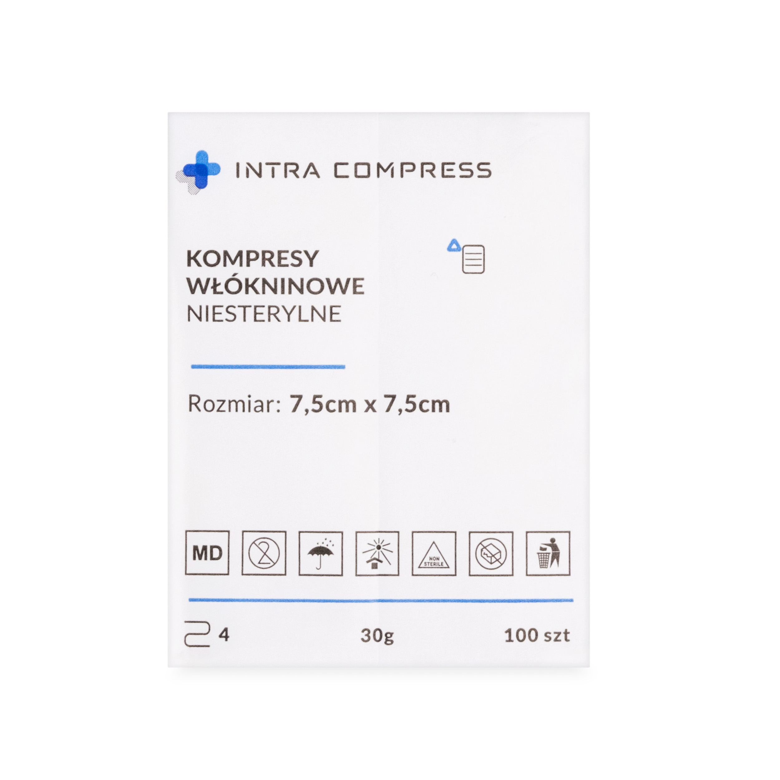 Intra-Med Kompresy z włókniny niesterylne 30g 7,5x7,5 cm (100 szt.)